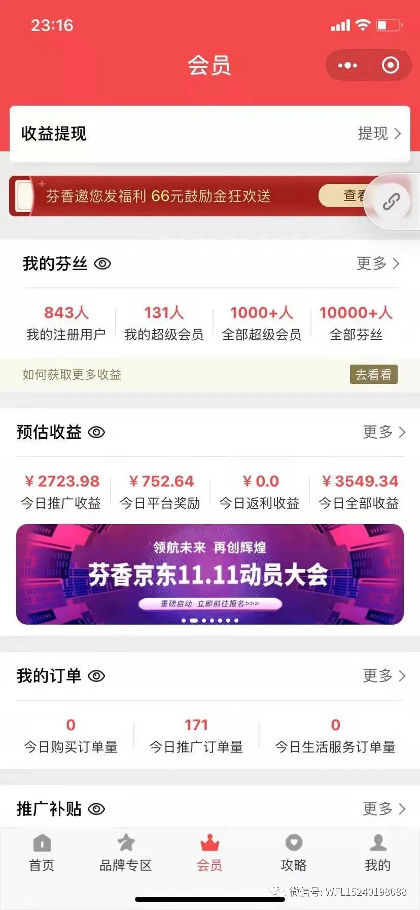 免费注册京东内购批发平台,京东商城全品类商品,低于令牌价,低于市场批发价,自购省分享赚,一月轻松赚上万几万,可以长期持续开展全国包邮批发零售。可以拥有自己独立名称专属于自己的店铺商城,开展店铺推广销售。可以全国招募下级会员,无限级别邀请与招募,您均有团队奖励,可以带领全国下级会员团队开展全国包邮批发零售。 重要提示: 1:识别注册京东内购超级会员后升级为店长要填写邀请码:GMMWTA,否则无法升级店长,还是超级会员! 2:京东令牌,大客户采购批发账号,京东高级采购批发账号,京东企业账号,京东慧采账号,等所有企业注册账号手机号不能注册,注册后无收益,无返现,重点提示! 3:京东价格逻辑是京东秒杀当天和时段6个小时价格低于令牌价,低于采购批发价,京东联盟芬香还有返佣返利3-10%。也是一个重要的推广全国网批渠道! 自我介绍 大家好,我是腾飞电子,来自河南郑州 自2020年5月3日注册芬香,2020年7月3日拿导师证书,2020年12月20日拿合伙人证书! 想想一路走来,也不容易,受过亲戚朋友、生意伙伴们的质疑和不解。 但我坚信自己,通过芬香一定能让我学习很多知识,开拓自己的眼界,于是我下定决心,给自己定一个目标,然后去认真学习芬香的点点滴滴,也得到了我的邀请人华南电器,团队的大力支持和甘总开导。 首先自5月份注册后,我用60天时间上导师,5个月成长合伙人。 但是我相信这又是一个崭新的开始,因为合伙人的身份,更是肩上的责任更重了。 本人目前团队2000多人,直属导师5人,二代导师1人。 我更希望团队会员越做越好,公司越来越好,蒸蒸日上,早日上市! 本人实体经营家电批发数年,因疫情期间接触了芬香,希望在未来的每一天与芬香共同成长。 我也会带领团队走向新的高度,也希望每位芬香家人越来越好! 也请各位芬香大咖多多指导! 注册会员-超级会员-导师-合伙人 1.超级会员拿直推超级会员20% 2.导师拿全团队20% 3.导师拿直属超级会员30% 4.导师拿直属导师50% 5.合伙人拿全团队25% 6.合伙人拿直属导师70% 7.合伙人拿直属合伙人70% 8.导师拿直属合伙人50% 9.导师拿导师卖货两级10% 想做全国批发零售的客户教你用芬香平台锁定客户,专业线报低于令牌价分享批发零售拿返利:: 京东芬香55裂变法 100%严格执行,20天快速晋升导师,30天晋升合伙人,并长期稳定获得收益。成为导师或者合伙人确缺少方法的,给你一个简单高效的执行方法! 【方法】 找到5个直属,算自己6个人,5个直属分别再找5个人,每天每人在自己的群卖货赚30元,连续执行卖货20天,每天活跃值180分,20天3600分,达标导师晋升。达标晋升导师后不要求必须卖货。同样让5个直属10天内,按次方法复制,20天晋升导师。自己拥有5个导师30天直升合伙人。同时让团队无限按照此方法裂变下去。 【要点】 1.用好招商课裂变和圈粉,找到5个愿意相信这个方案并承诺执行的人,在6人群里发书面【承诺书】承诺100%执行。 2.集中全部精力只盯住自己和5个直属,谁在当天晚上11:30分推广佣金未达到30元,谁自己出钱买必须达标。 【爆款产品】 学习群里老师会不定时发爆款,除了带链接的需要转链以外,其它内容全部复制转发到自己的卖货群,同步操作即可。 1:识别注册京东内购超级会员后升级为店长要填写邀请码:GMMWTA,否则无法升级店长,还是超级会员! 2:京东令牌,大客户采购批发账号,京东高级采购批发账号,京东企业账号,京东慧采账号,等所有企业注册账号手机号不能注册,注册后无收益,无返现,重点提示! 3:京东价格逻辑是京东秒杀当天和时段6个小时价格低于令牌价,低于采购批发价,京东联盟芬香还有返佣返利1-10%。也是一个重要的推广全国网批渠道! 简单一段话描述芬香社交电商: 芬香社交电商,专注推广京东商城商品,百分之九十九的京东商品在芬香都有优惠券或者返利,推广赚钱,自用省钱,建立团队推广更赚钱,普通人0元创业,副业首选 美团外卖红包推广,推广赚钱,自用省钱,经常点外卖的以及餐饮商家推广利器 全国加油八折起,家里有车的,自用省钱,推广赚钱,省下的钱买衣服不香吗? 直播达人,素材海报达人,有才的发挥才华,有力的大力推广,芬香有你更美好! 话费充值,送活跃值等 芬香模式+分润✔ 1、超级会员福利 推广佣金100% 享受直属超级会员20%奖励 2、升级导师要求: 20个直属超级会员,80个全部超级会员(全部活跃超级会员≥8),3500成长值 升级导师福利: 推广佣金150% 享受直接超级会员推广佣金的30%奖励 享受非直属超级会员推广佣金的20%奖励 享受直属导师50%平台奖励 享受直属导师10%推广佣金 享受二代导师10%推广佣金 3、升级合伙人要求: 只需5个直属导师(隔代也算) 升级合伙人福利 推广佣金150% 享受直接超级会员推广佣金30%奖励 享受非直属超级会员推广佣金25%奖励 享受直属导师70%平台奖励 享受直属导师10%推广佣金 享受二代导师10%推广佣金 芬香更多激励活动等你来撩,详情仔细研究芬香首页,0元开启创业,利用业余碎片时间创业,共同实现财务自由! 欢迎加入京东芬香社交电商 请回复数字详询内容 1.芬香简介 2.创始团队 3.融资历程 4.独家优势 5.芬香模式 6.芬香怎么做 7.《自助开通推品助里》 8.《如何锁粉邀请注册》 9.《如何秒升级超级会员》 10.《芬香各板块导航介绍》 11.《京东新人1元购》 12.《商品界面介绍》 13.《攻略、我的界面介绍》 14.《芬香介绍招商文件》 15.