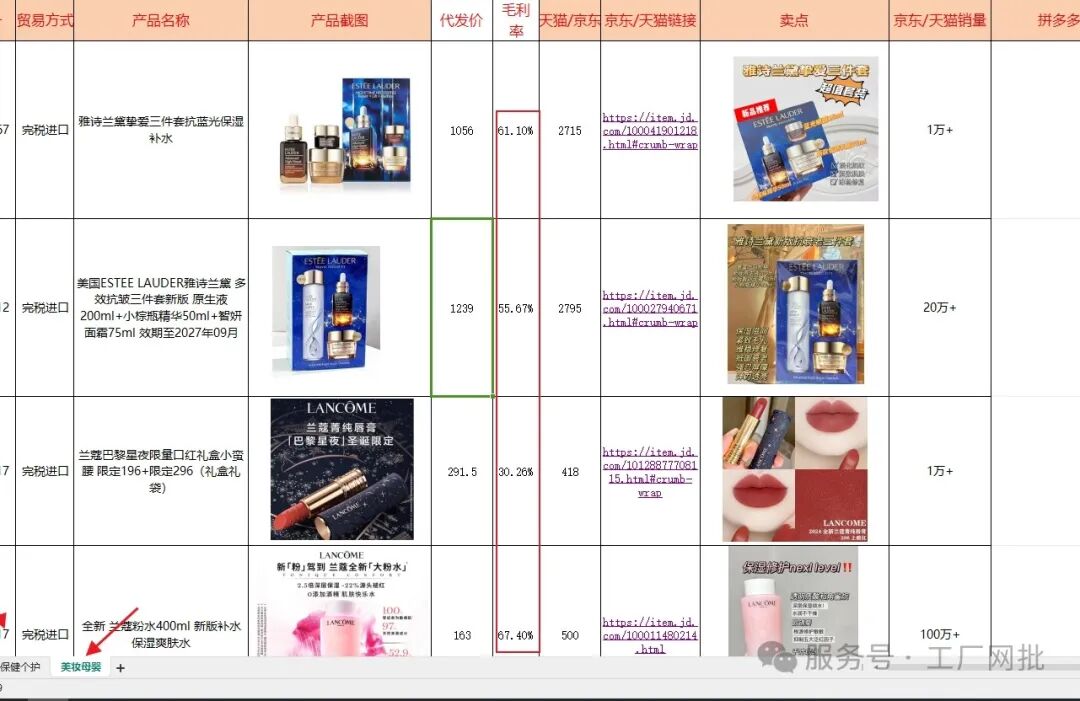 京东、海拉、天猫、工厂等各平台美妆奢侈品全国批发零售
