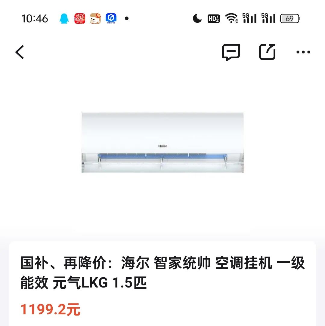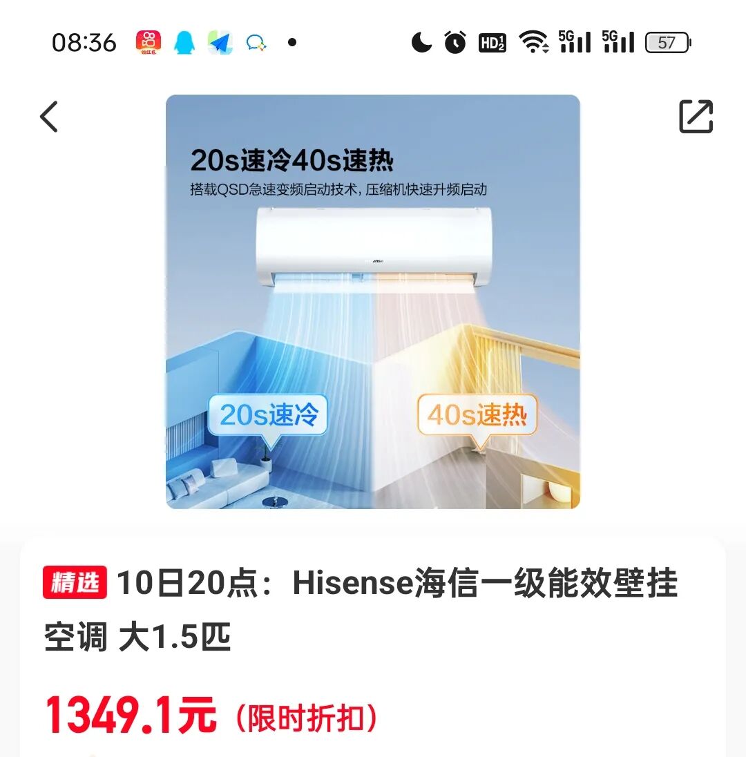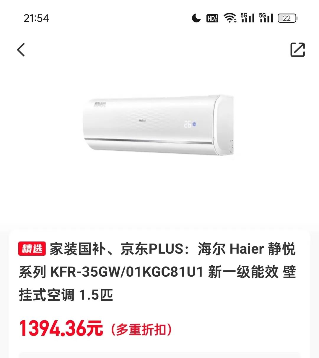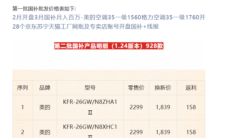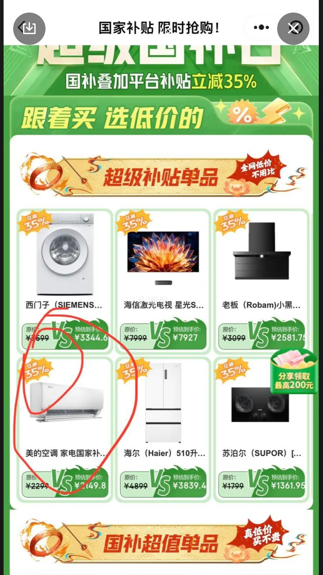 开通国补帐号35一级空调599元美的空调35一级1198格力空调1599海尔海信TCL科龙空调35一级806日入40万决战618