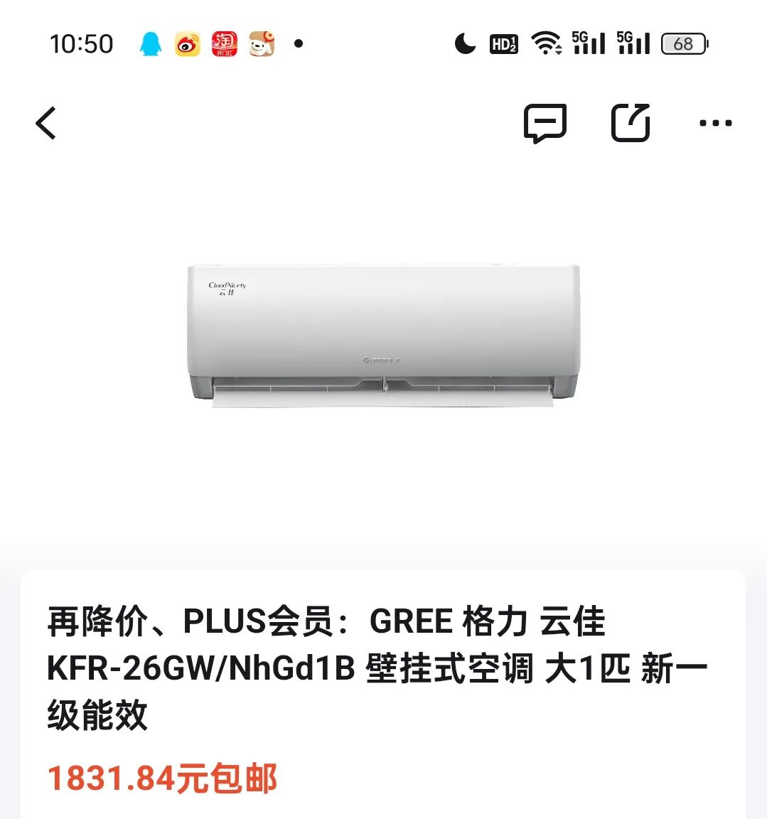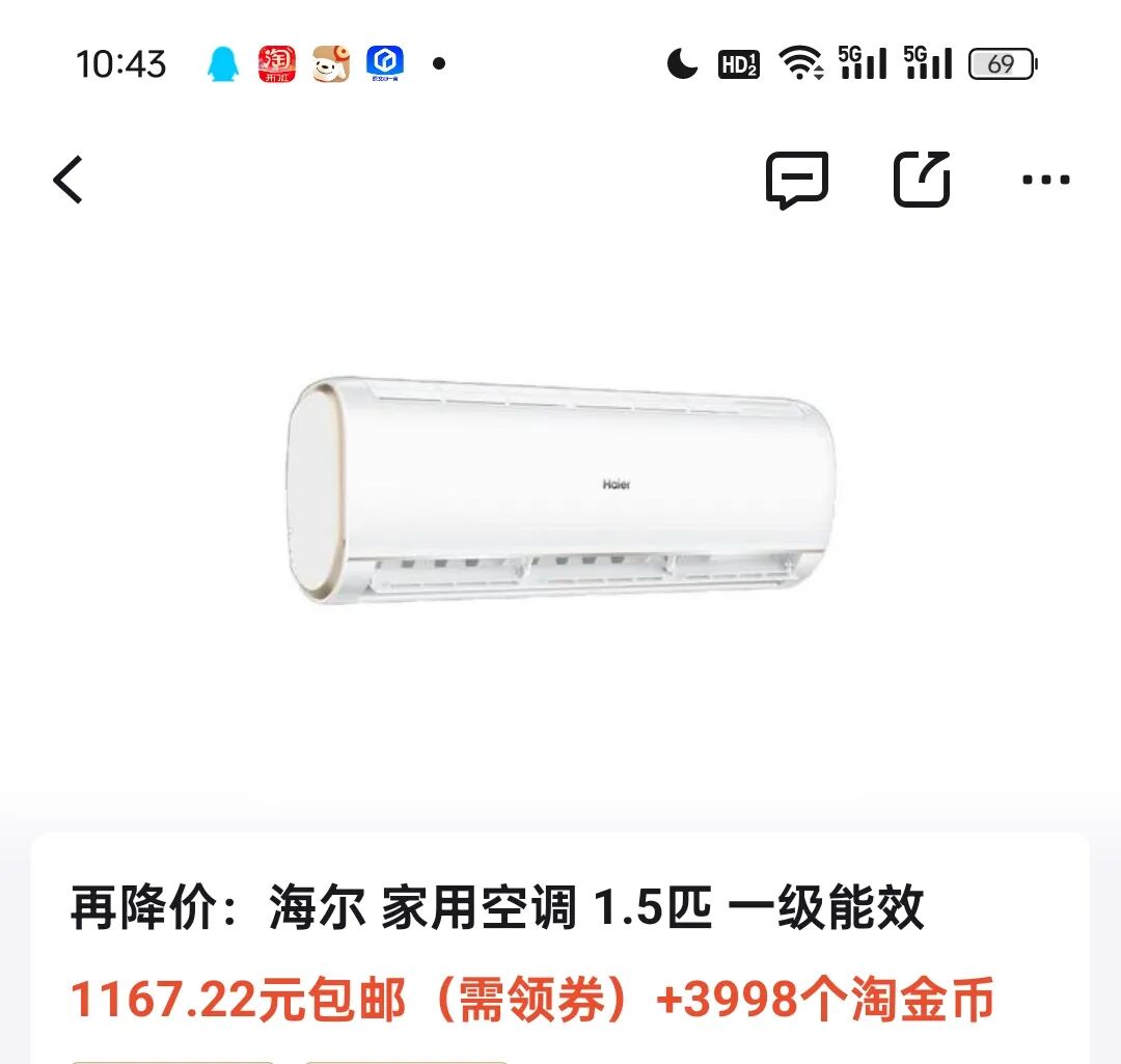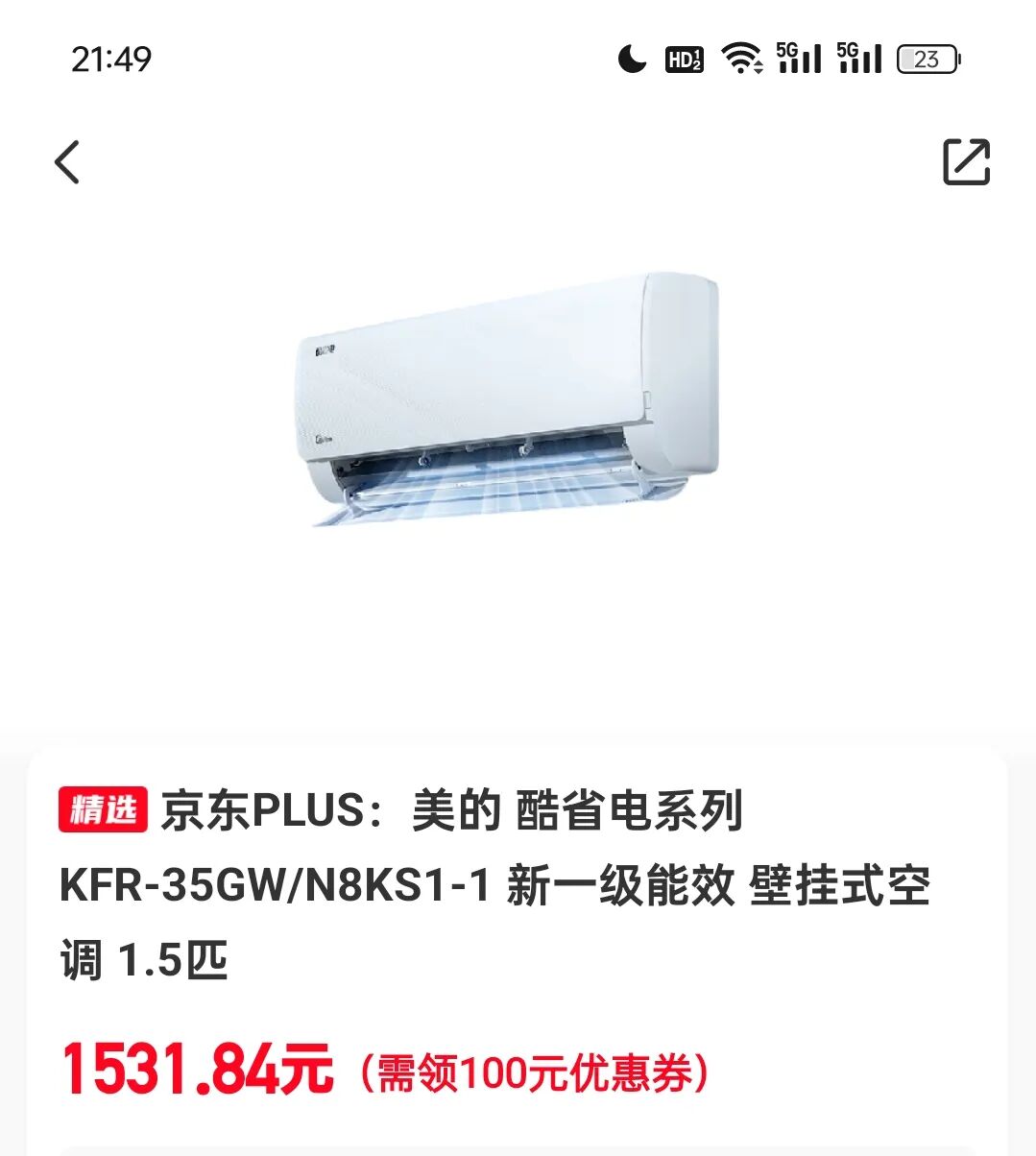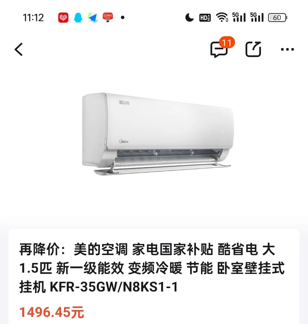 开通国补帐号35一级空调599元美的空调35一级1198格力空调1599海尔海信TCL科龙空调35一级806日入40万决战618