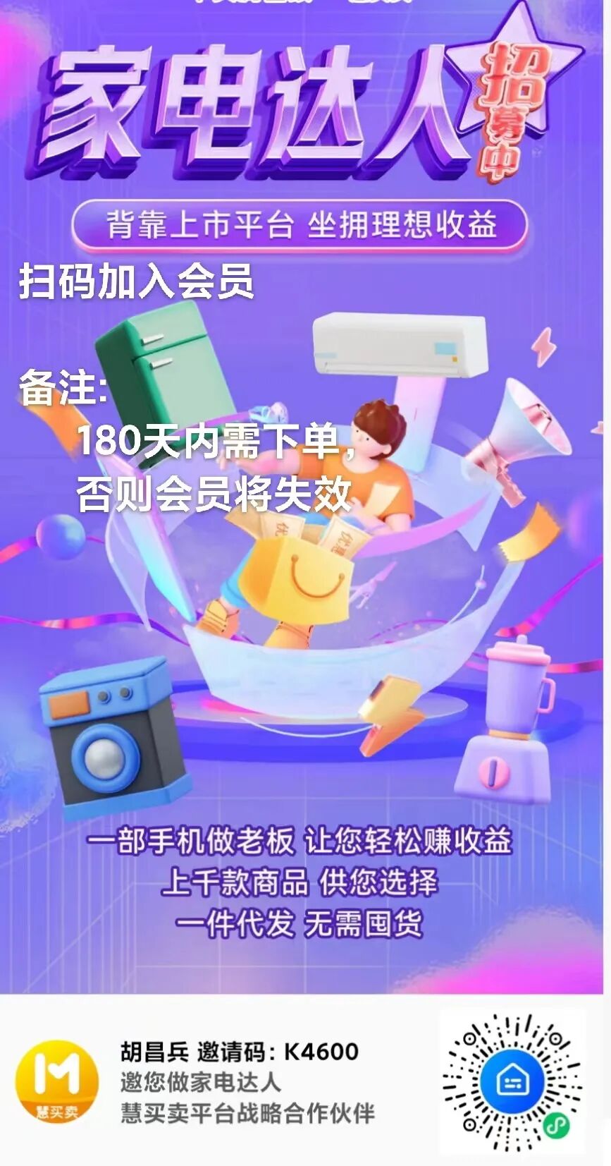全国网批!年收入过亿!教一部手机年收入100万以上!全国家电同行老板们,家电行业内卷严重,想换赛道,想换经营模式的可以联系我 赚大钱机会马上来了,免费组织一场粉丝会邀请您了解未来的轻资产创业,经营当下实体店面,线上线下结合,同城引流,全国引流,短视频直播带货,业绩提升几十倍,一部手机实现轻资产创业,年收入100万以上,赢在思维。