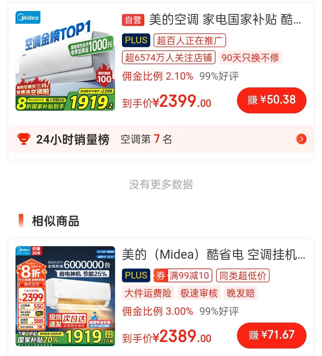 格力空调35一级1599美的空调35一级1293!华凌TCL空调35一级998元!空调电视冰洗家电家居建材卫浴8折+几百几千佣金!