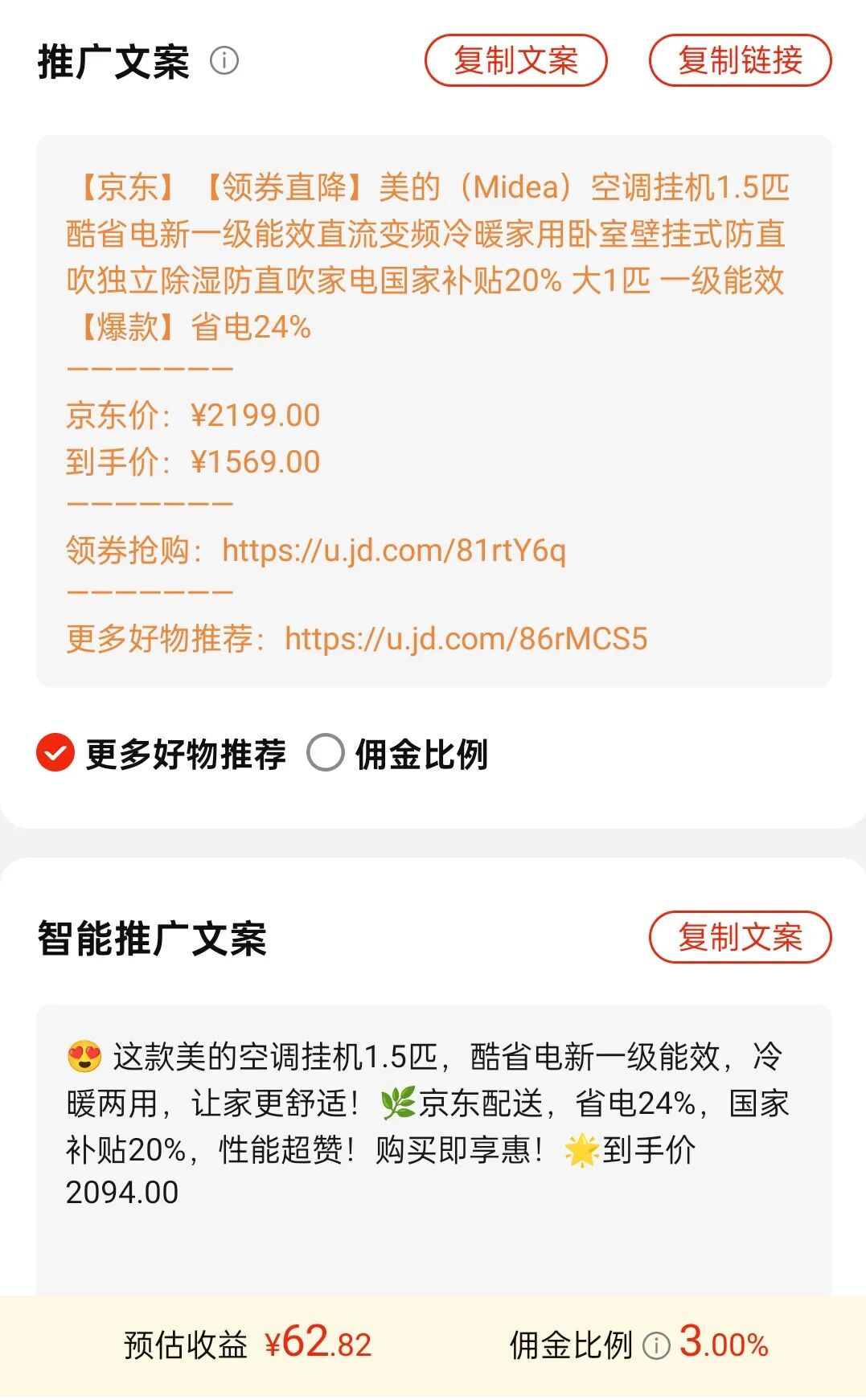 美的空调最新国补佣金政策京东国补帐号已陆续上架,以上今日会全部上架审核生效,佣金至高3300元!!!