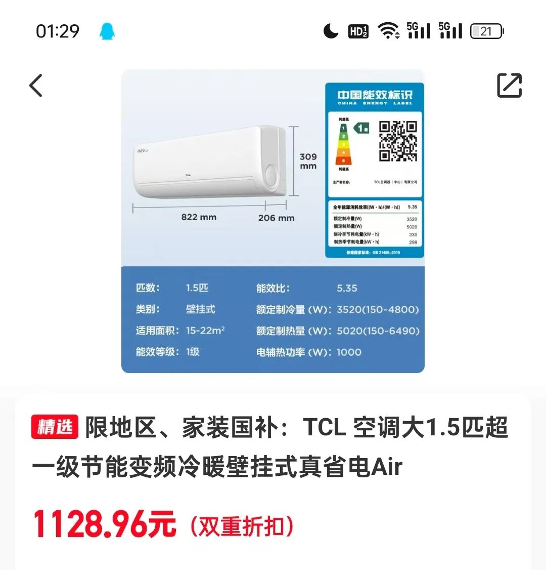 16个国补帐号TCL华凌空调35一级818美的35酷省电1356海尔1167劲爽35一级格力空调35一级1766线上国补卖全国