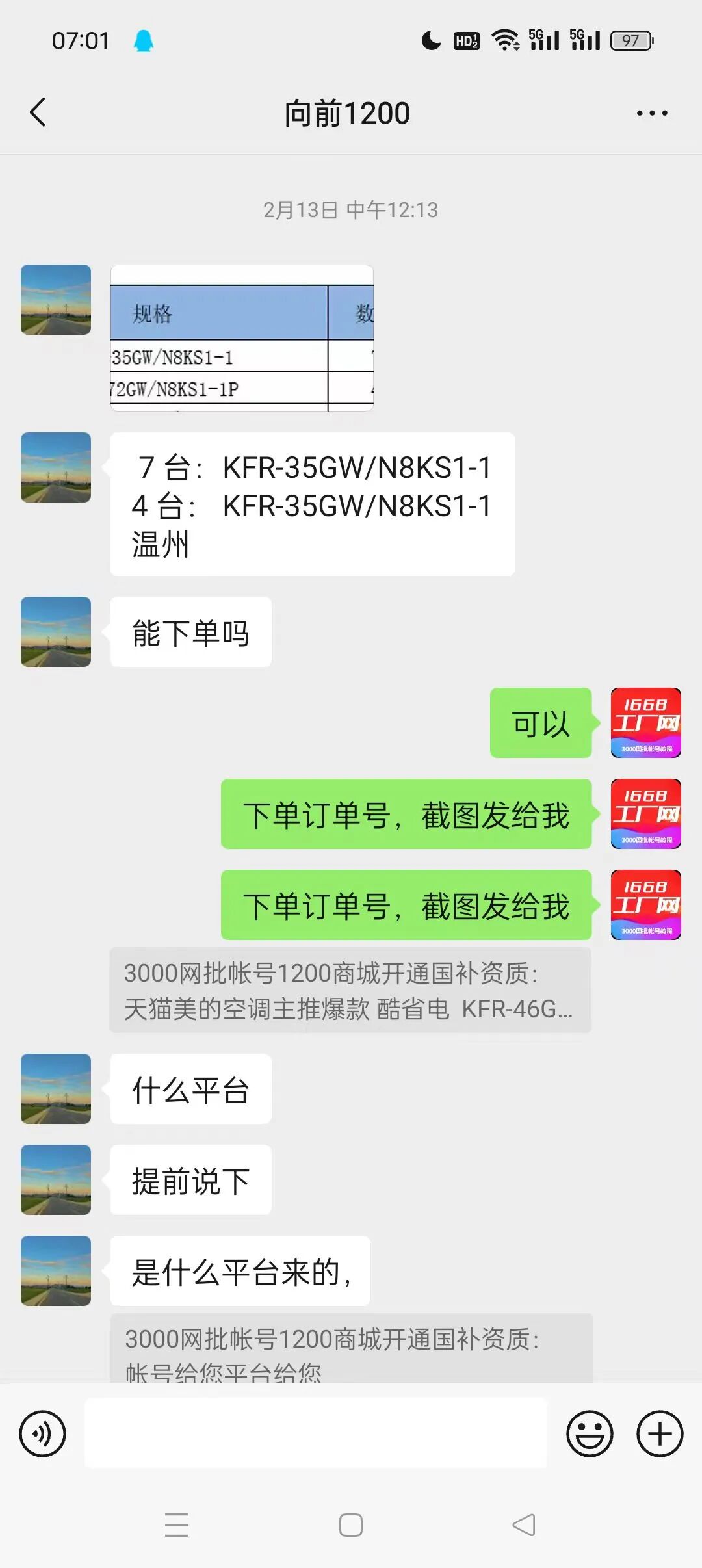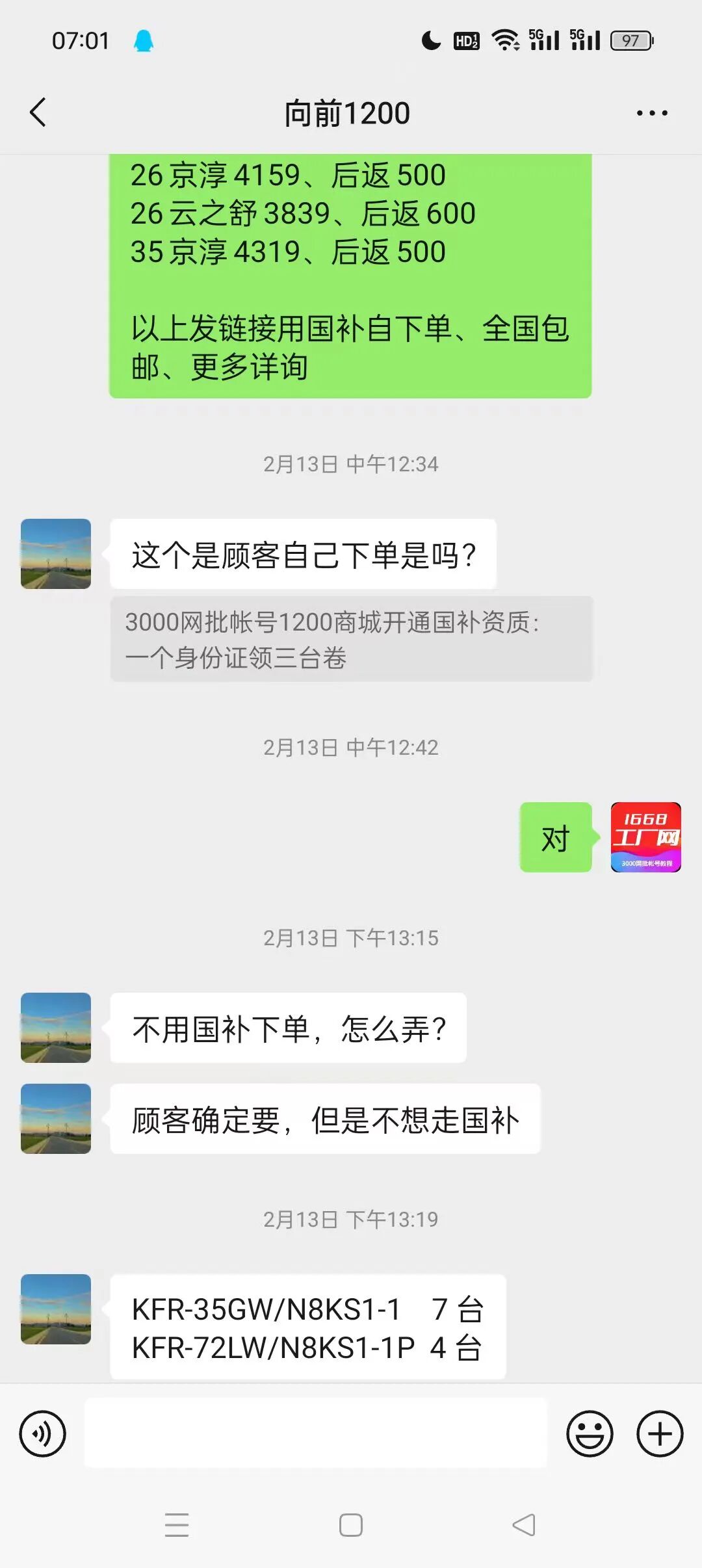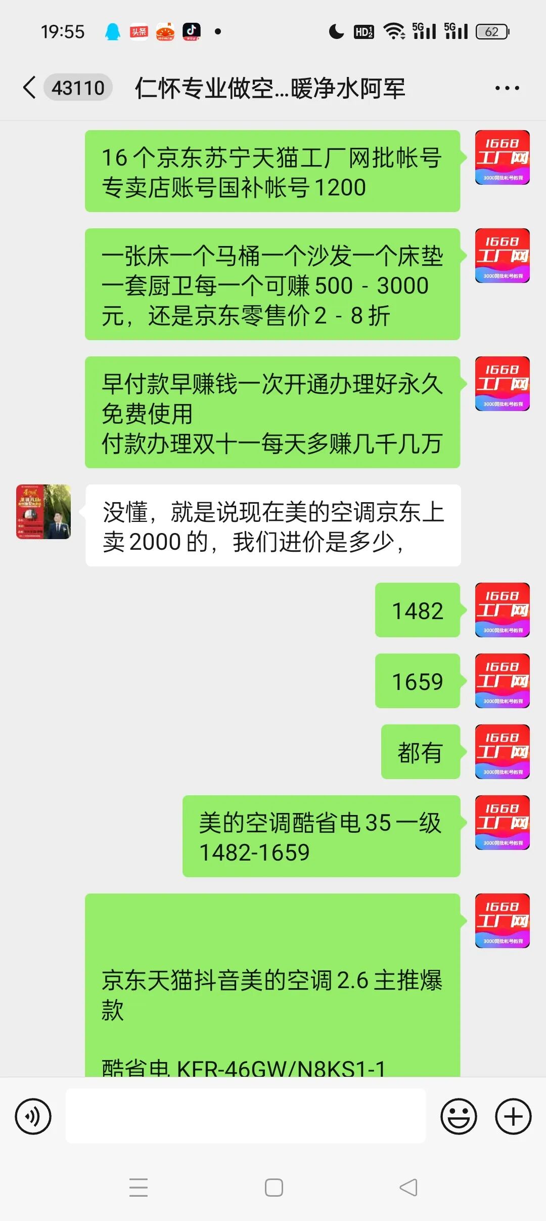 16个国补帐号华凌空调35一级818美的1393海尔空调35一级1167格力空调35一级1766元-1668工厂网独家教程服务
