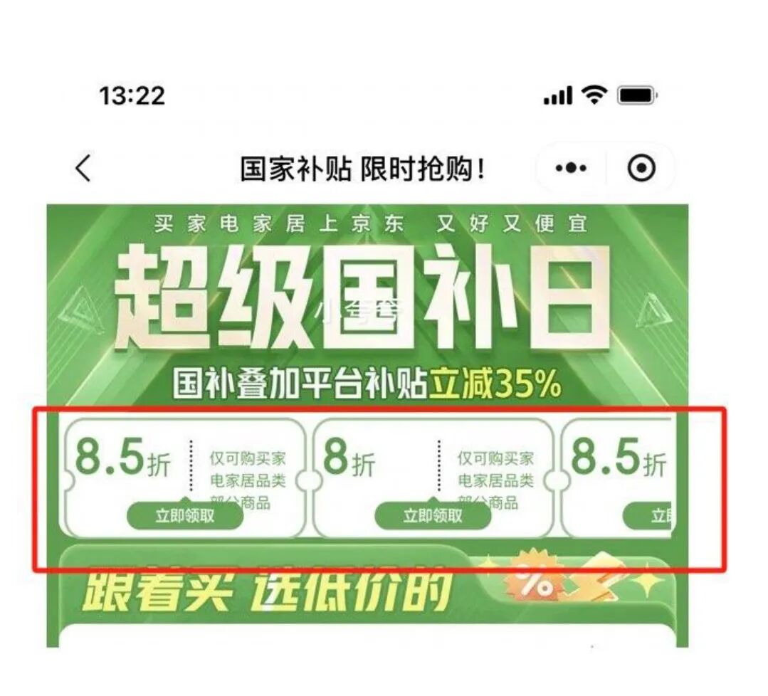 用双重补贴,国补+京东以旧换新+优惠券+店铺合作
