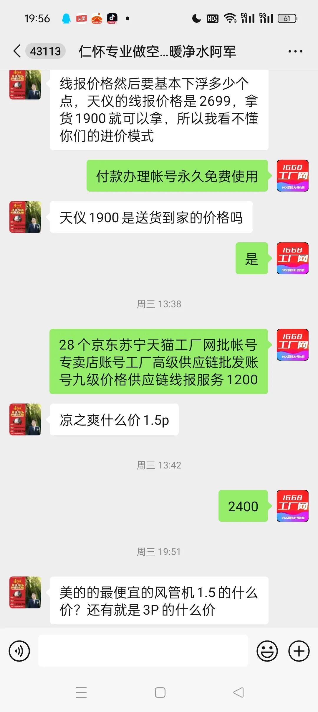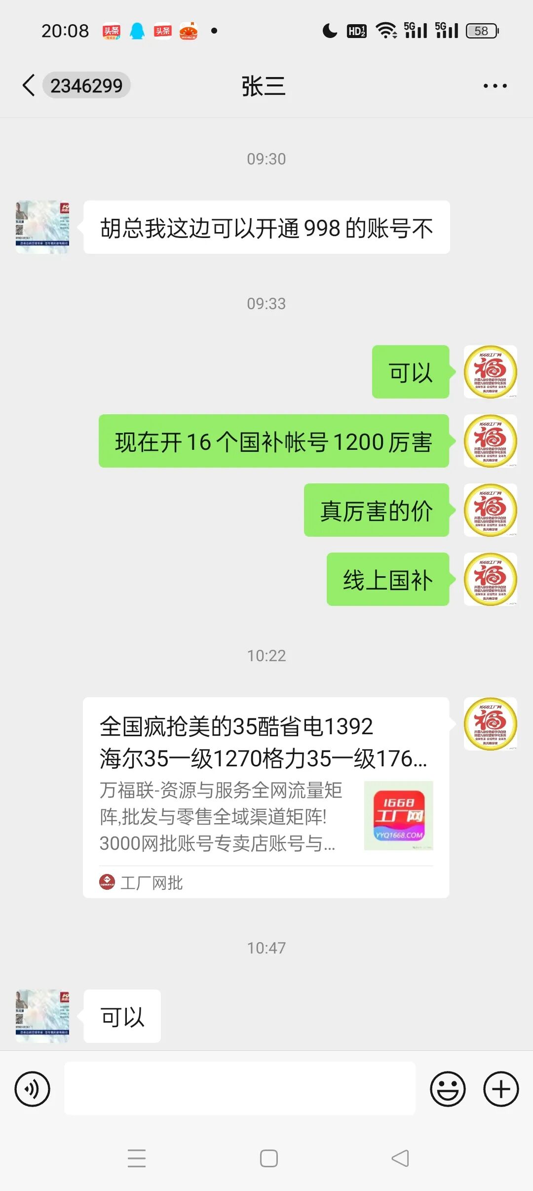 16-76个-92个个网批国补帐号专卖店国补帐号工厂高级供应链国补帐号顶盟360个线报软件156个网批账号!美的酷省电35一级1356元!及开通156个专卖店帐号工厂高级供应链批发帐号1200-2980元顶盟线报价格:点击蓝字见文章,文章后面有500张线报价格截图。