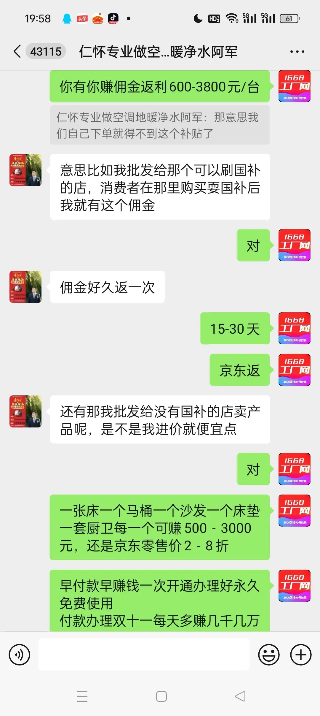 187个国补帐号卖批发家电家居批发账号采购返1%,一个装修公司免费入驻年返利你10-20万三年,一台家电家居全国8折卖返你600-3800元/台
