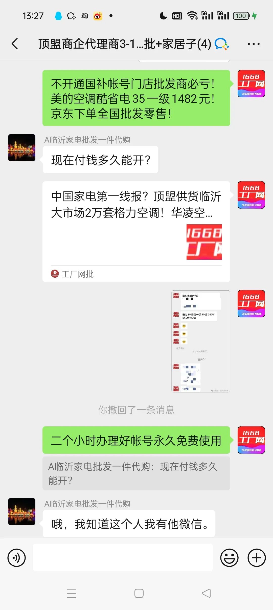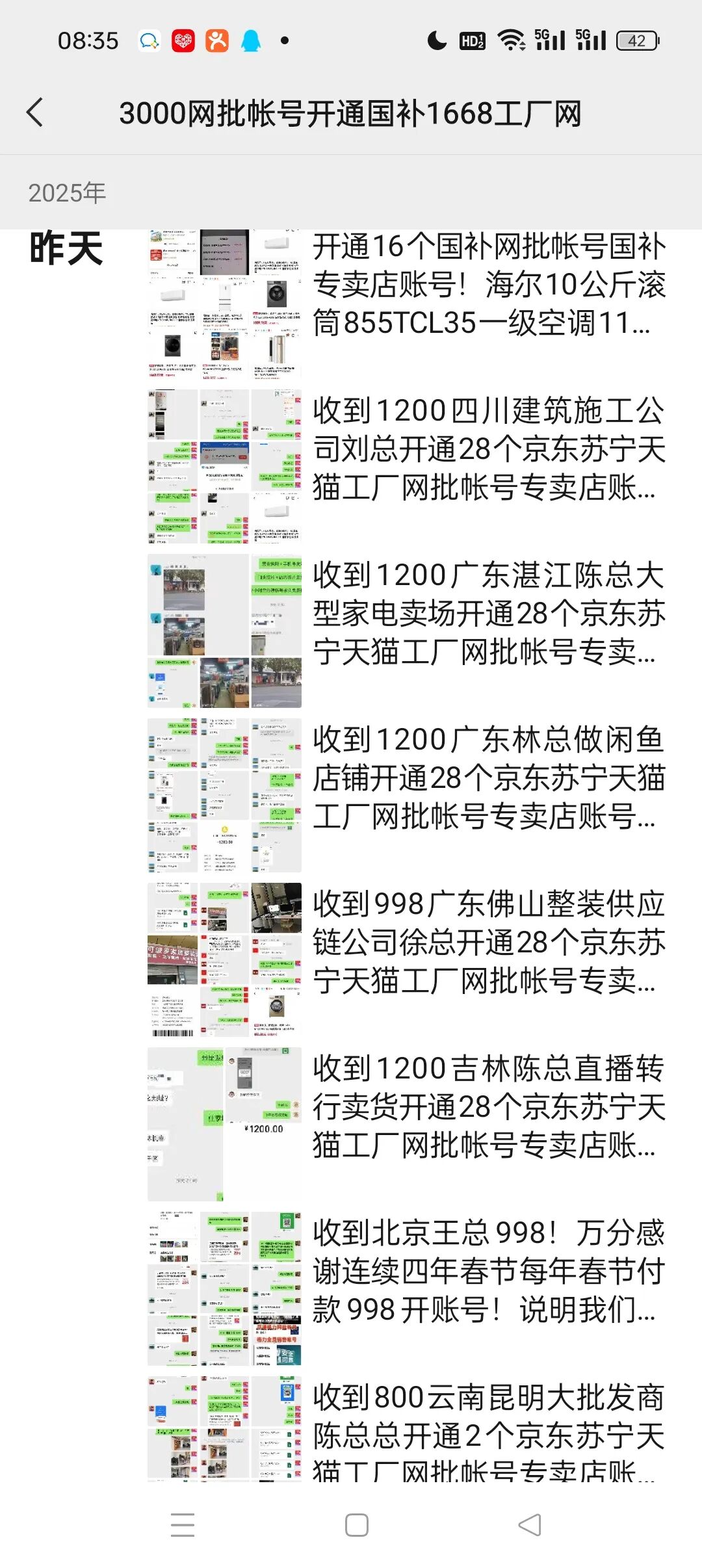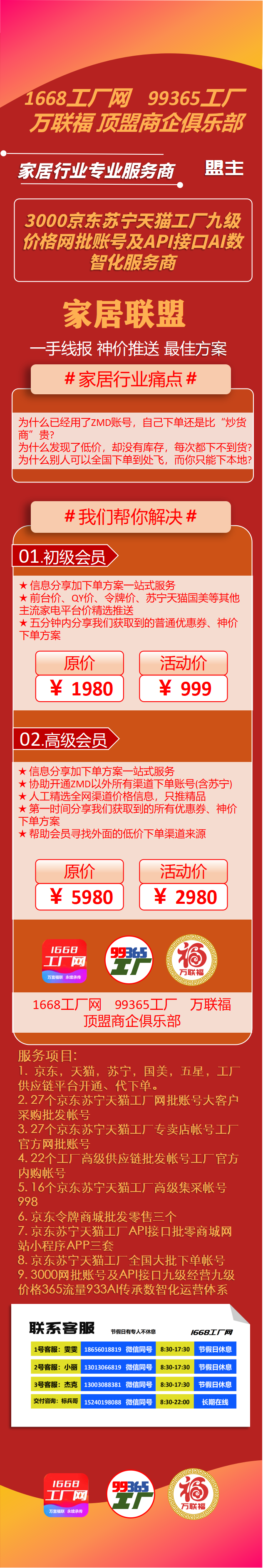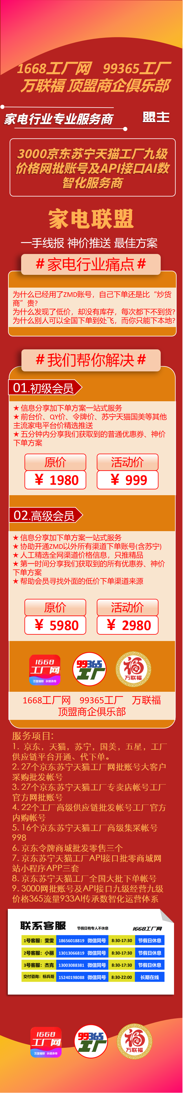 决战618!519开始!日入40万进京东家电家具VIP群!16个国补帐号,16个线报帐号,28个网批帐号专卖店账号,16个API接口H5商城小程序系统自己收款独立名称京东苏宁天猫工厂同步订单信息资金物流同步同款SKU几十万商品变价上下架京京东苏宁天猫工厂全国一件代发全国包邮批发零售。