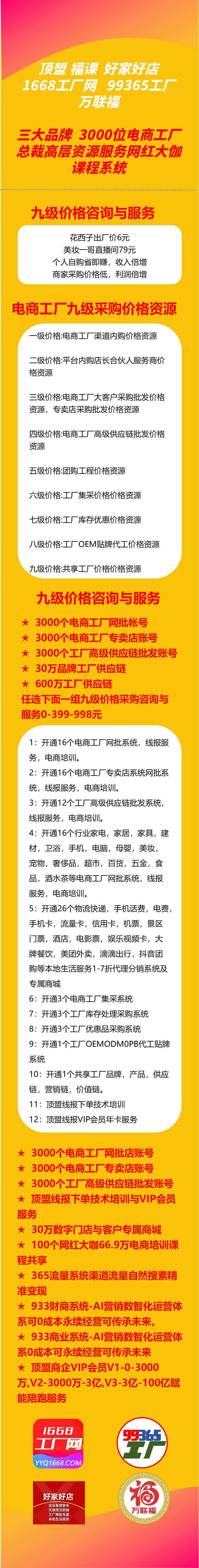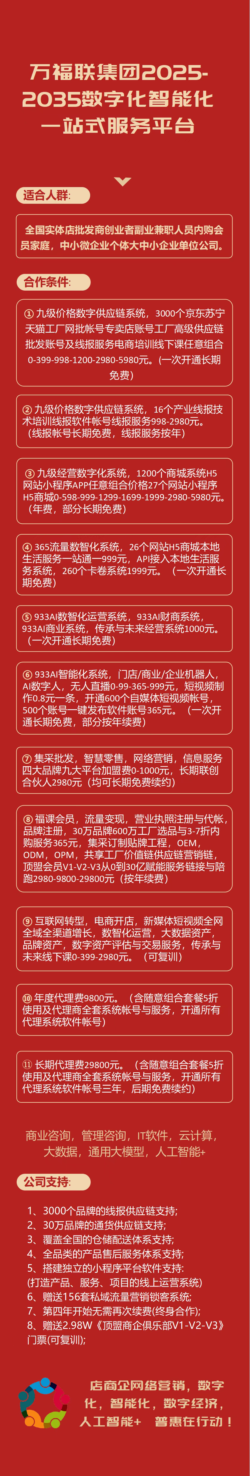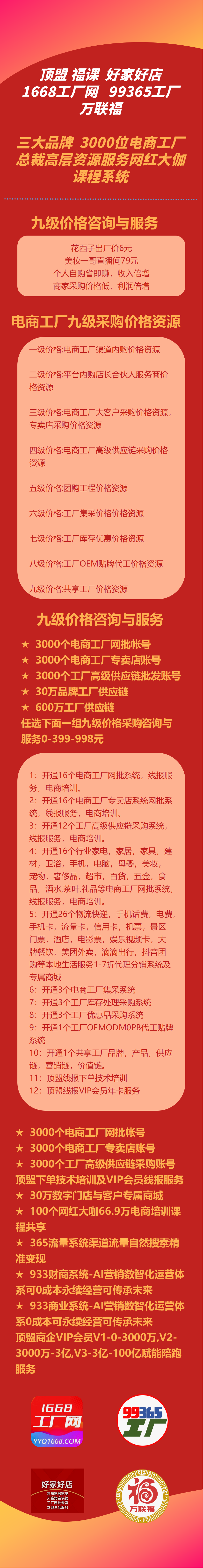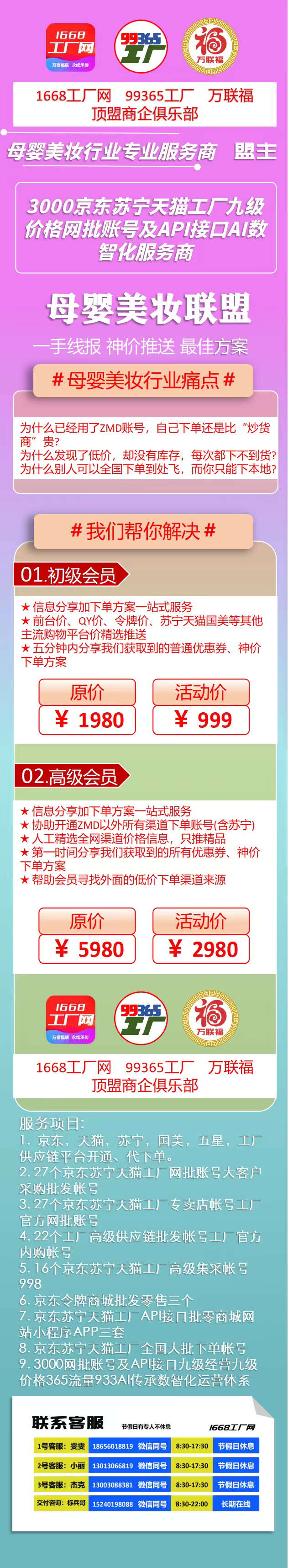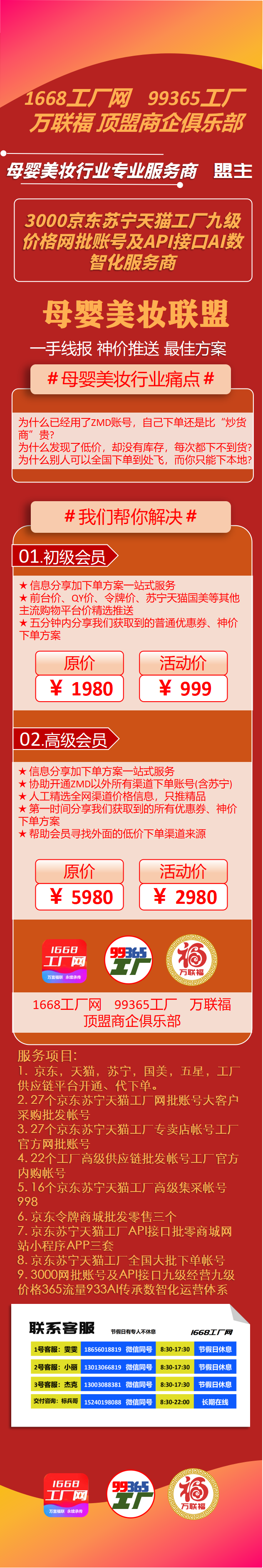 99元会员费开通3000个京东苏宁天猫工厂网批帐号专卖店账号16个国补账号360个线报账号1200个小程序商城H5商城系统365个流量系统156个AI数智化运营系统开通9级价格9级经营15个盈利模式!0投资年赚百千万,0资金年销三五亿!