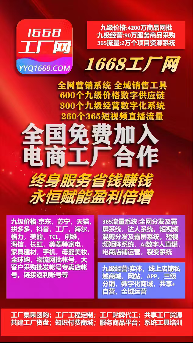 服务天下货卖给天下所有人!京东苏宁天猫工厂5-8折货源网批!全网最低价,都在1668工厂网!